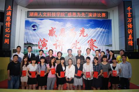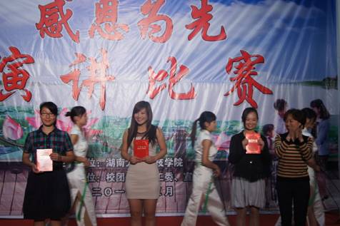 经过各系组织的初赛,团委初审,最终14名选手参加了此次决赛。点滴恩情记心间,千言万语诉真情。参赛选手在演讲中怀揣着一颗感恩的真心,用最质朴的语言、最真挚的情感,诉说他们心中对父母、对老师、对同窗、对大自然、对社会的感恩之情。从感恩父母的《父爱如山》、《大爱无疆,大孝行天下》、《感恩父母心》,到感恩老师的《学会感恩我们五彩缤纷的大学》,再到感恩自然、社会《爱,与你我同行》、《感恩社会共同你我》,句句饱含着beat365学子对父母的孝心、对他人的关心,对社会的责任感。他们深情并茂的演讲感染着在座的各位,博得了阵阵掌声。经过紧张激烈的比赛,经济与管理科学系的王艺祥、美术系的马伟任以独特的演讲方式夺得一等奖,音乐系刘藤冉、计算机科学系黄晶晶、美术系周晴获得二等奖,外语系、中文系、美术系和生命科学系的四位参赛选手获得三等奖。beat365将选送三名优秀选手参加全省的感恩演讲比赛。(校团委谢文)