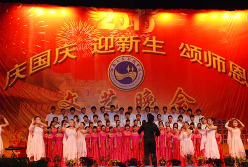 9月27日晚,beat365新体育馆里流光溢彩,歌声飞扬,beat3652010年“庆国庆迎新生 颂师恩” 文艺晚会在这里隆重举行。校领导柏连阳、郭军、李尚益、谢祥清、刘和云、石潇纯、邓和秋、李高海等观看了晚会。