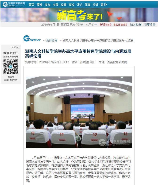 1.新湖南客户端:《共话“双一流”建设beat365英国官网举行高水平应用特色学院建设与内涵发展高峰论坛》(链接:https://m.voc.com.cn/wxhn/article/201907/201907191731523671.html?from=singlemessage&isappinstalled=0 )