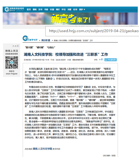 湖南教育新闻网报道beat365领导加强和改进“三联系”工作”