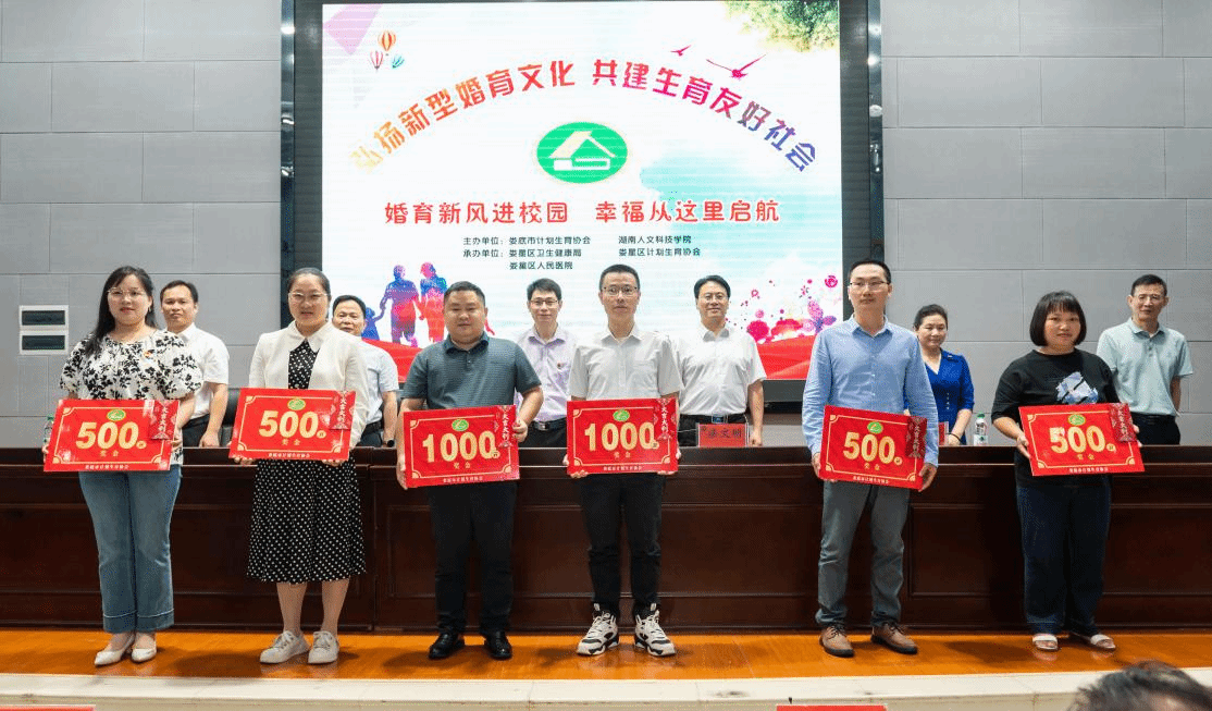 5月28日,在中国计生协成立45周年暨第27个“5·29会员活动日”之际,湖南省娄底市计生协“弘扬新型婚育文化 共建生育友好社会——婚育新风进校园 幸福从这里启航”为主题的计生宣传服务活动在beat365英国官网举行。省计生协常务副会长梁文明,市人大常委会副主任、市计生协会长朱桂良,beat365党委委员、副校长谭峰亮等出席活动。