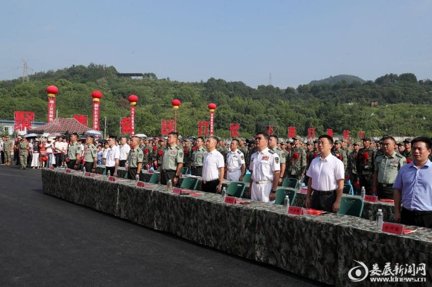欢送仪式气氛热烈隆重,新兵们身着戎装、精神抖擞,展现了新时代青年昂扬向上的精神风貌,体现了当代青年的责任与担当。在市委书记、娄底军分区党委第一书记曾超群致欢送词后,与市委常委、市委秘书长谢君毅,市委常委、娄底军分区司令员麻新法,娄底军分区政治委员许光,娄底军分区副司令员段德学为进疆进藏新兵代表佩戴绶带并赠送鲜花,现场掌声不断,充满爱国崇军氛围。