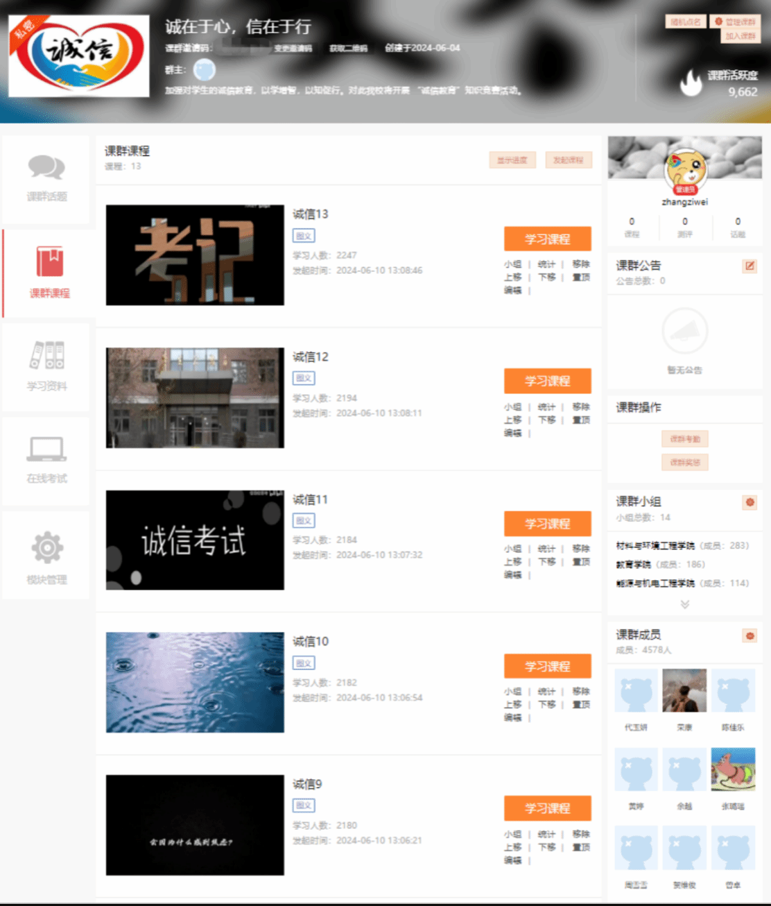 为响应教育部下发的《关于大力开展高校学生资助诚信教育主题活动的通知》,落实党的二十大提出的“完善覆盖全学段学生资助体系”要求。同时发挥高校人才培养的职能,将学生资助工作与思想政治工作紧密结合,加强对学生的诚信教育。我们开展了线上活动,完成线上加入课群后对课群内资料的学习后,通过知识竞赛的形式来检测同学们对内容的掌握。同时加强同学们的诚信意识,保证期末考试的有效性。