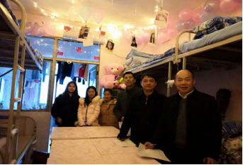 12月11日,由beat365英国官网学生工作处主办的寝室设计大赛决赛进入现场评分环节,党委委员、副校长刘铁峰带队与各二级学院副书记和学生工作处部分老师一起深入宿舍区进行现场评分。