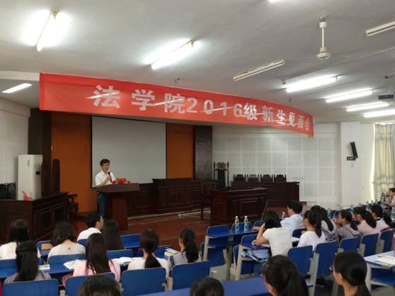 9月13日上午,法学院2016新生见面会在致远楼202顺利举行,大会由法学院党总支副书记刘依归老师主持,党总支书记谢光绎研究员、院长朱耀斌博士、副院长王秋香教授、辅导员郭璐老师及法学院2016级全体新生参加了此次新生见面会。