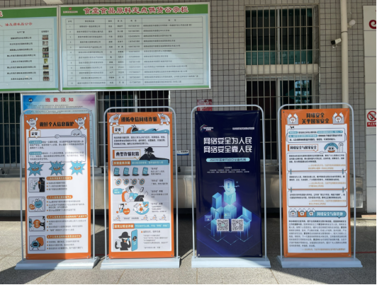 学校食堂大门口摆放网络安全宣传展板