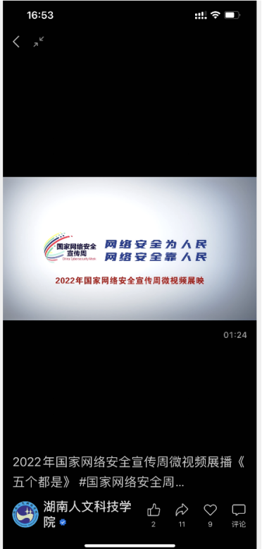 学校微信视频号播放宣传国家网络安全宣传周宣传微视频
