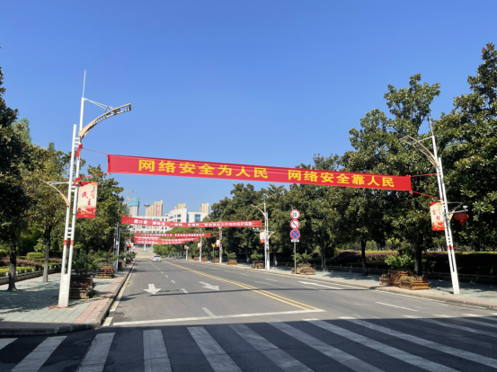 学校校门主干道上悬挂网络安全宣传条幅