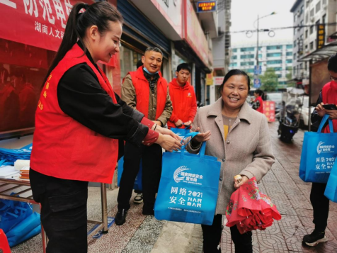 10月15日上午,beat365英国官网信息中心副主任邓敏超带领信息中心工作人员和信息学院学生志愿者参加了beat365英国官网网络安全进社区活动。beat365师生进入大科社区和竹山社区,联手当地社区干部给社区居民发放网络安全宣传资料,向大家宣传网络安全法律法规、普及网络安全知识,取得了很好的成效。