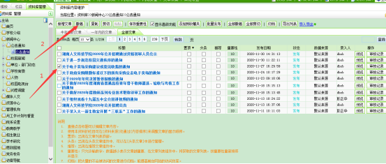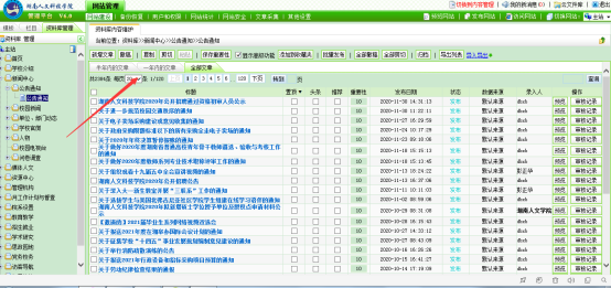 需批量操作文章数比较多的时候,可以选择每页显示的文章条数,以增加每页显示的文章数,见下图