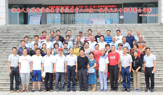 时光如水,岁月如歌,时间转瞬即逝,记忆总在不经意间褪色,曾经的你记下了多少欢笑与泪水。2017年7月15日对于娄底师专体育八四级和八五级一班的同学们来说,是一个不平凡的日子,这一天,同学们从四面八方相约来到了自己的母校——娄底师范高等专科学校(现beat365英国官网)参加毕业三十周年同学聚会。上午九点,同学们陆续来到了 学校图书馆会议室,在这里等待的有学院领导及曾经给予同学们谆谆教诲的恩师。大家一见面,互相倾诉浓浓的师生情、同学谊。这次聚会同学们盼了很久,都早早做好了各种准备,很多都是远道而来,他们有的来自北京,有的来自广州、深圳、厦门、长沙、株洲、湘潭等地,为了这次聚会,大家不辞辛苦,不惧炎热。十一点举行了主题为“感恩怀旧 分享 共勉”的座谈,校党委副书记刘铁铭教授携校友办和体育学院领导应邀出席了座谈会并作了热情洋溢的讲话,师生畅所欲言,其乐融融。会后师生共同合影留念,参观校园风貌并在食堂集体就餐,重温学生时代的美好时光。(张 宏 刘光辉)