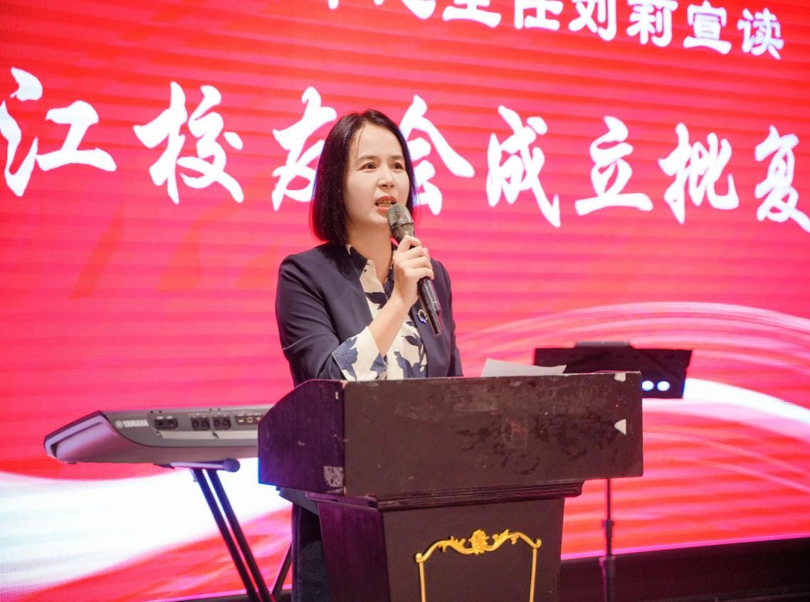 刘莉宣读《关于同意成立beat365英国官网校友会浙江分会的批复》。