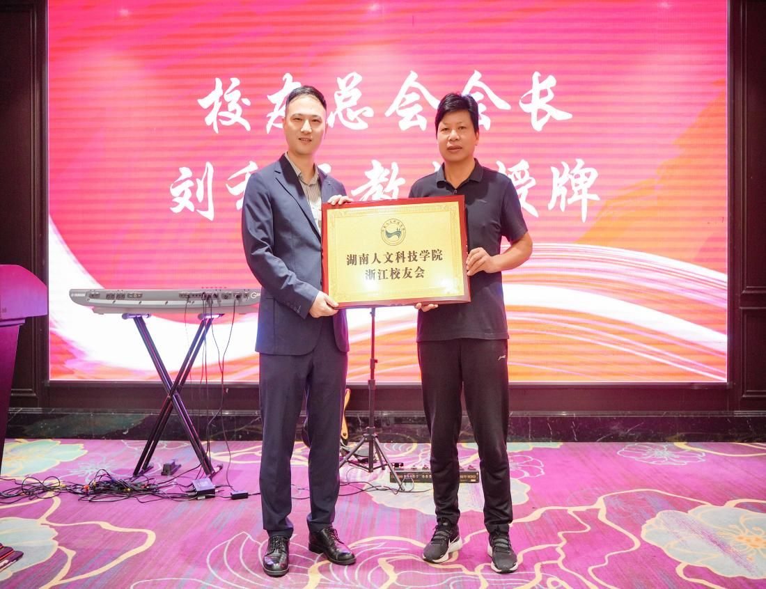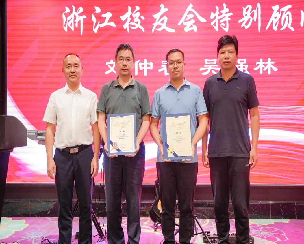 刘铁峰、刘和云分别为浙江校友会首任会长、副会长、秘书长、副秘书长、特别顾问颁发聘书。