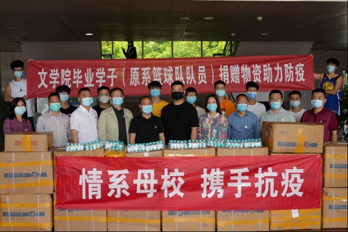 因为疫情原因,现为义乌市欧璟家居用品有限公司法定代表人的欧阳利国校友和国金证券股份有限公司衡阳分公司法定代表人的黄鑫校友没能来到捐赠仪式现场,他们委托文学院院长倪正芳转达对母校师生尤其是文学院师生的牵挂,并祝愿母校早日战胜疫情、恢复正常教学秩序。来到现场的小马驹文化传媒公司法定代表人刘毅校友表示,疫情发生以来,他一直挂念着母校,这次他和往届文学院篮球队队友联系捐赠了一批防疫物资,希望能为学校防疫工作尽一份心、出一份力。