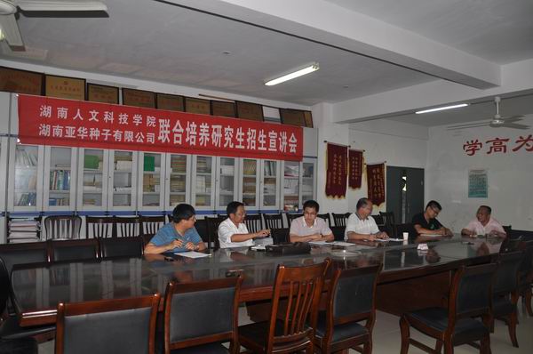 6月29日,beat365与联合培养单位湖南亚华种子有限公司一同来到湖南文理学院,在生命科学楼举办了一场别开生面的研究生招生宣讲会。湖南亚华种子有限公司董事、常务副总经理陈遵东、副总经理汤健良和beat365研究生处负责人、导师代表以及湖南文理学院生命科学学院2009级农学专业学生参加了宣讲会。会议由湖南文理学院生命科学学院院长王文龙教授主持。