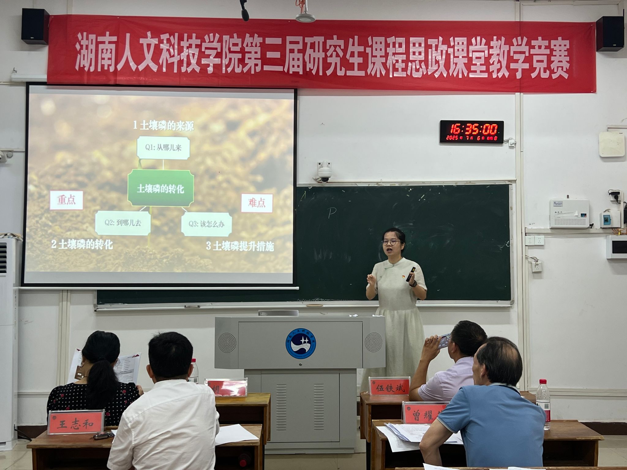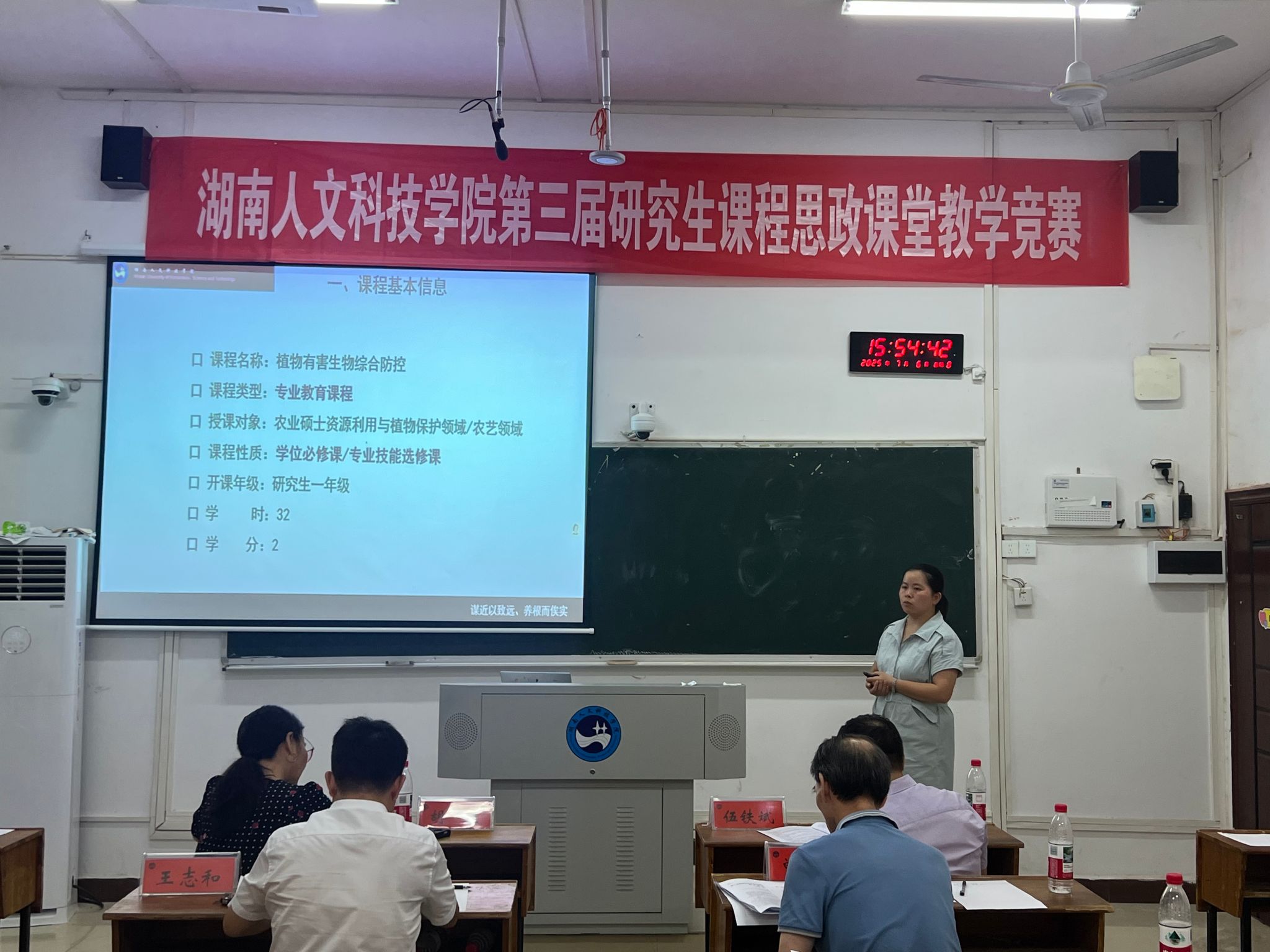 为深入贯彻习近平总书记关于教育的重要论述,全面落实全国和全省研究生教育会议精神,推动实现“三全育人”,研究生教育教学部于7月6日在播馨楼110教室成功举办学校第三届研究生课程思政课堂教学竞赛暨省赛选拔赛。本次竞赛由研究生教育教学部副主任周丽华主持,相关领域的专家担任评委,研究生教育教学部全体老师参加,各领域教师到场观摩。