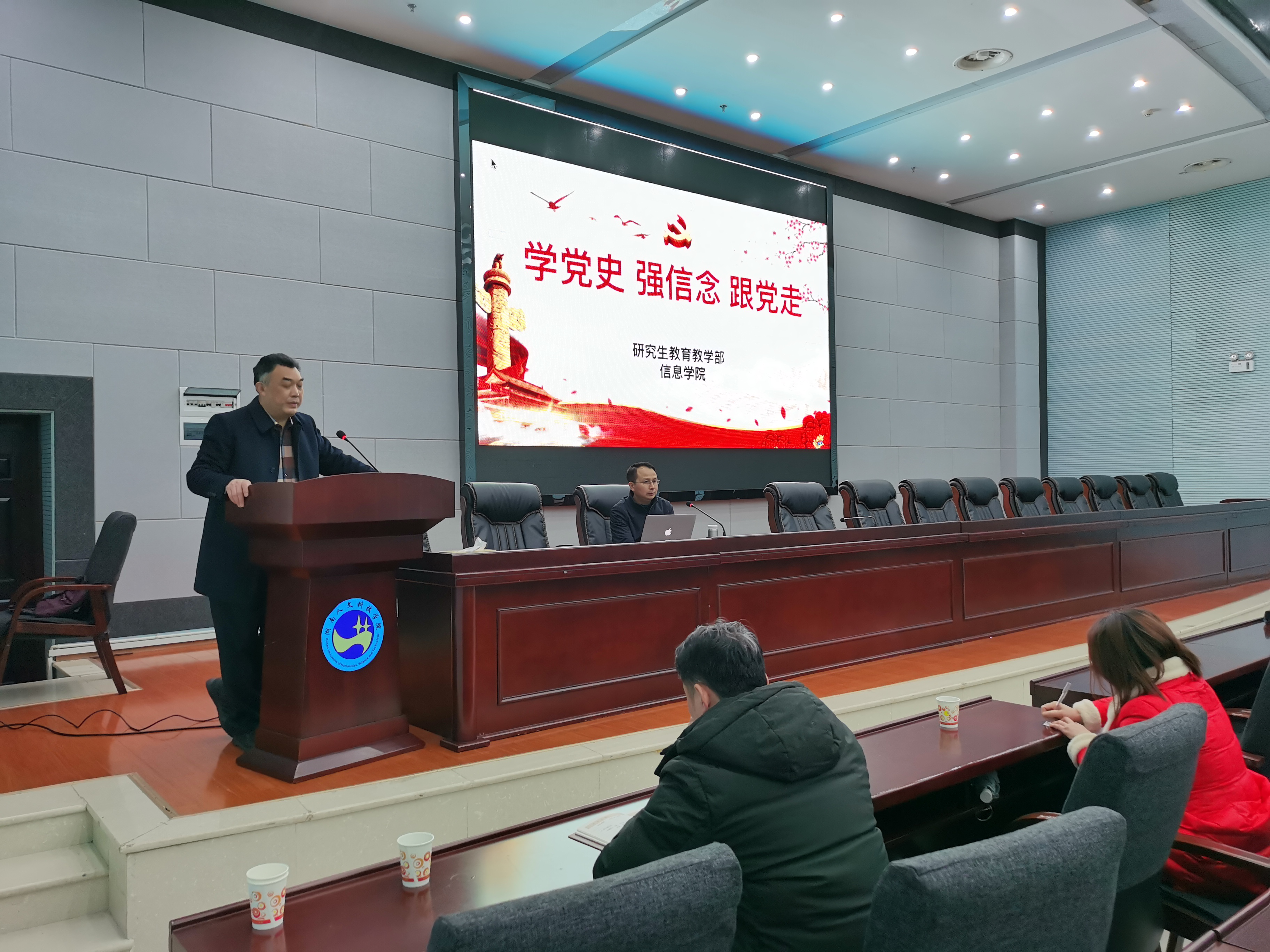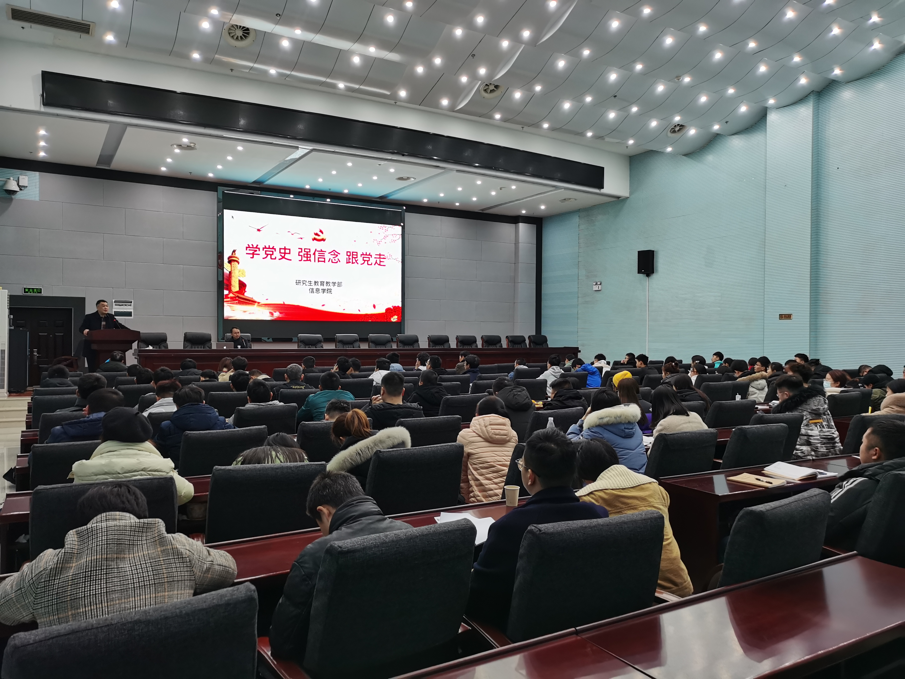 2021年3月10日,研究生教育教学部直属党支部书记在图书馆第二会议室,开展了《学党史 强信念 跟党走》的党课教育。研究生教育教学部副主任、党支部副书记、辅导员、班主任级20级全体研究生参加了此次党课学习教育活动。
