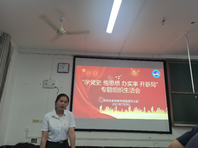 2021年7月9日19:00我支部在致远楼210成功举办“学党史、悟思想、办实事、开新局”专题组织生活会,支部书记彭健民、支部副书记向瑞桃以及组织委员王文琴莅临会议现场。此次会议根据上级有关疫情防控的要求,在校党员集中在教室召开会议,因疫情防控无法返校的党员通过学习强国APP连线参加线上会议。