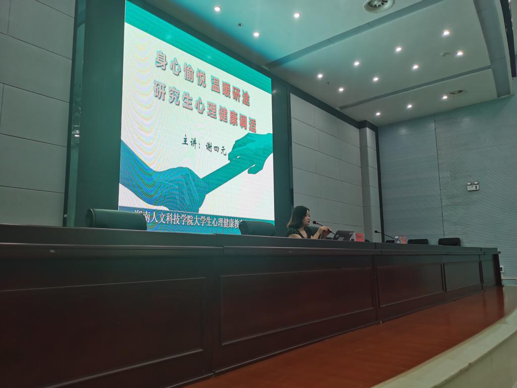 为进一步提高研究生的心理素质,促进研究生的身心健康和谐发展,宣传普及心理健康知识,9月14日上午9:00在图书馆第二会议室beat365召开了“身心愉悦,温暖研途——研究生心理健康调适”2021级研究生心理健康教育专题讲座。本次讲座由研究生教学教育部组织,校心理健康教育与咨询中心谢四元处长、校心理健康教育与咨询中心聂恒主任为各位新生开展了心理健康调适,此次讲座由研究生教学教育部副书记向瑞桃主持。