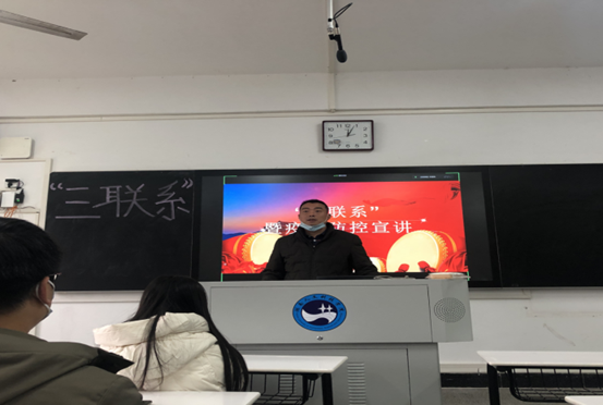 11月30日,刘建勋副校长携研究生教育教学部全体领导、老师深入研究生班级开展“三联系”暨疫情防控宣讲活动,全体研究生参加。
