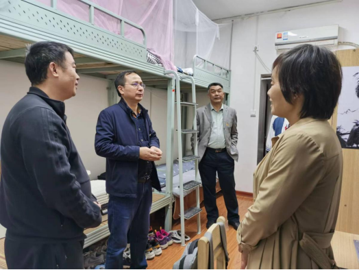 图2 刘建勋副校长查看研究生的寝室布置