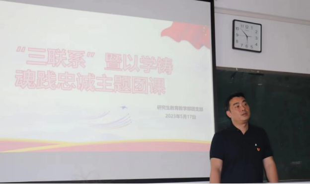 2023年5月17日,刘建勋副校长一行人到致远楼411开展“三联系”暨以学铸魂践忠诚主题团课活动。