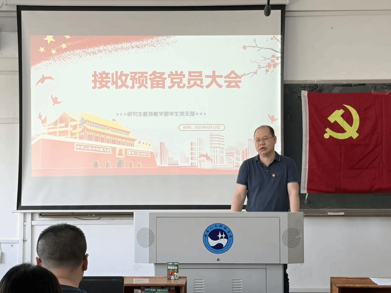 6月12日,研究生党支部在致远楼411教室隆重召开预备党员接收大会,顺利完成15名入党积极分子的接收工作。会议由学生党支部书记曾华主持,研究生教育教学部党总支书记刘康珍及支部全体党员参加。