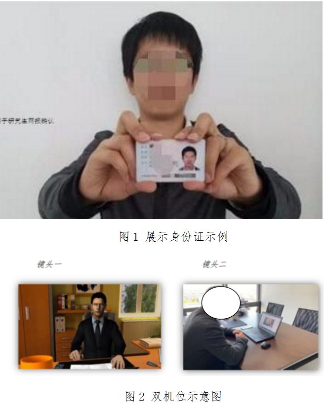 7、进入视频复试系统后,手持有效二代居民身份证向面试专家展示正面。展示身份证标准示例照片(见图1);电脑从正面拍摄,手机摄像头从考生侧后方成45°角进行拍摄(见图2)。考生如有困难,无法自行准备考场条件,应及时向beat365说明情况,根据beat365建议解决问题。