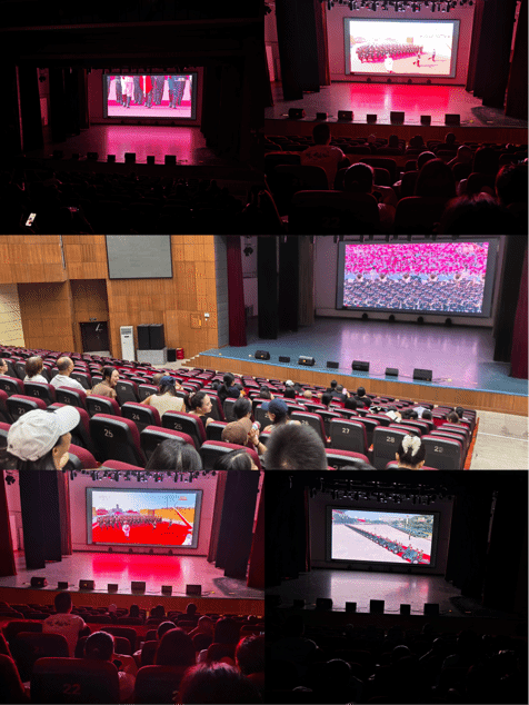 9月3日上午,为纪念中国人民抗日战争暨世界反法西斯战争胜利80周年,音乐舞蹈学院组织全院师生以线上线下相结合的形式观看了盛大的阅兵仪式直播。学院全体老师齐聚音乐厅、部分返校学生在教室进行观看,未返校的学生也通过多种形式同步收看这一庄严时刻。观看结束后,音乐舞蹈学院组织全体教师集中学习习近平总书记在纪念中国人民抗日战争暨世界反法西斯战争胜利80周年大会上的重要讲话精神,并围绕“艺术教育与抗战精神传承”主题开展深入研讨。当晚,学院要求全体教职员工分散观看了主题为《正义必胜》的纪念抗战胜利80周年文艺晚会演出。
