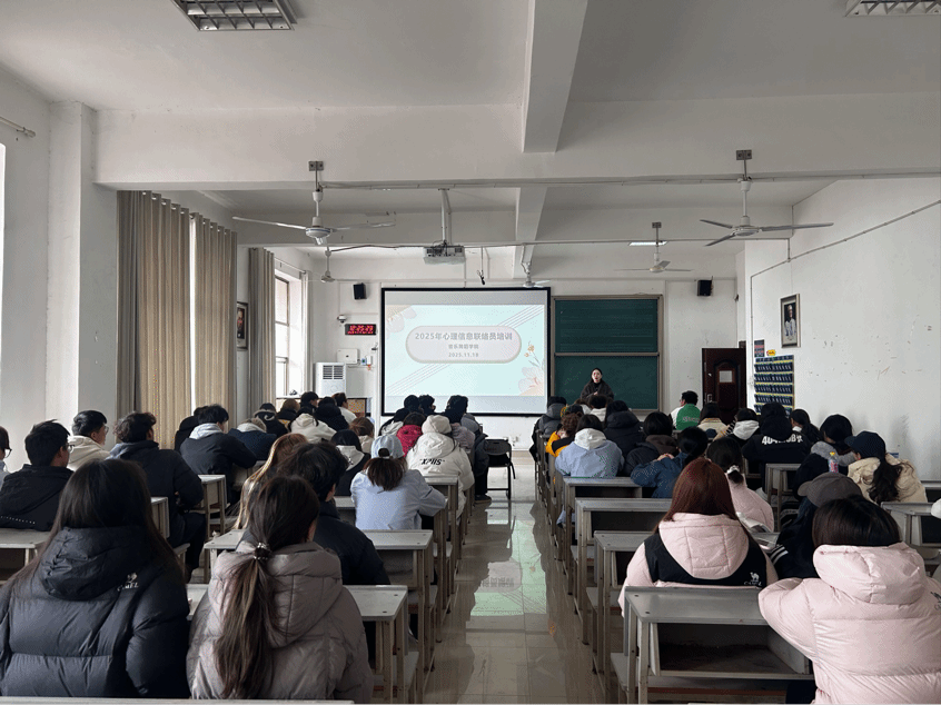 为筑牢校园心理健康服务体系基层纽带,提升心理联络员专业能力。2025年11月18日,音乐舞蹈学院在逸夫楼304教室举行信息联络员培训会。23级、24级、25级全体心理委员,25级各班寝室长以及心理干事参加,培训由心理专干刘诗怡主持。