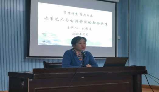 10月20日下午,我院副院长、副教授刘利连在逸夫楼602室举办《古筝艺术与古典诗词的融合共生》的学术讲座。本次讲座由器乐教研室主办,院长周邦春、书记刘纲华以及学院部分教师与全体器乐学生到场聆听讲座。