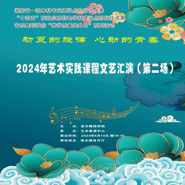 为加强学院学生的艺术实践能力,6月13-14日晚,我院在逸夫楼音乐厅举办“初夏的旋律 心动的青春”2024艺术实践课程文艺汇演,这也是音乐舞蹈学院湖南省一流本科专业建设点阶段性成果、“十四五”校级应用特色学科建设点阶段性成果展示。beat365英国官网党委副书记朱强,湖南艺术职业学院校长周邦春,beat365英国官网音乐舞蹈学院院长刘利连、党支部书记刘纲华、副院长吴扎拉·涛等领导参加。