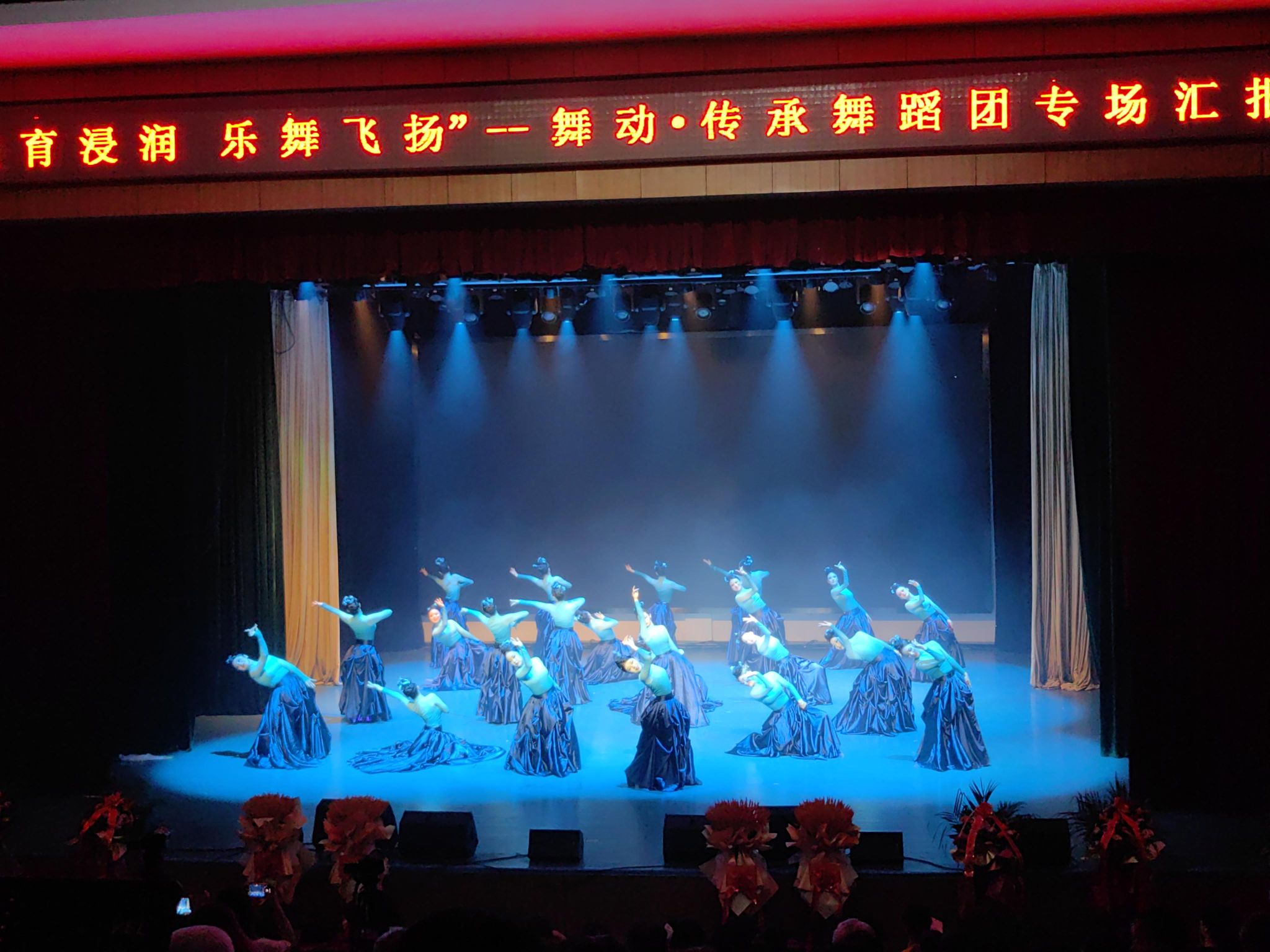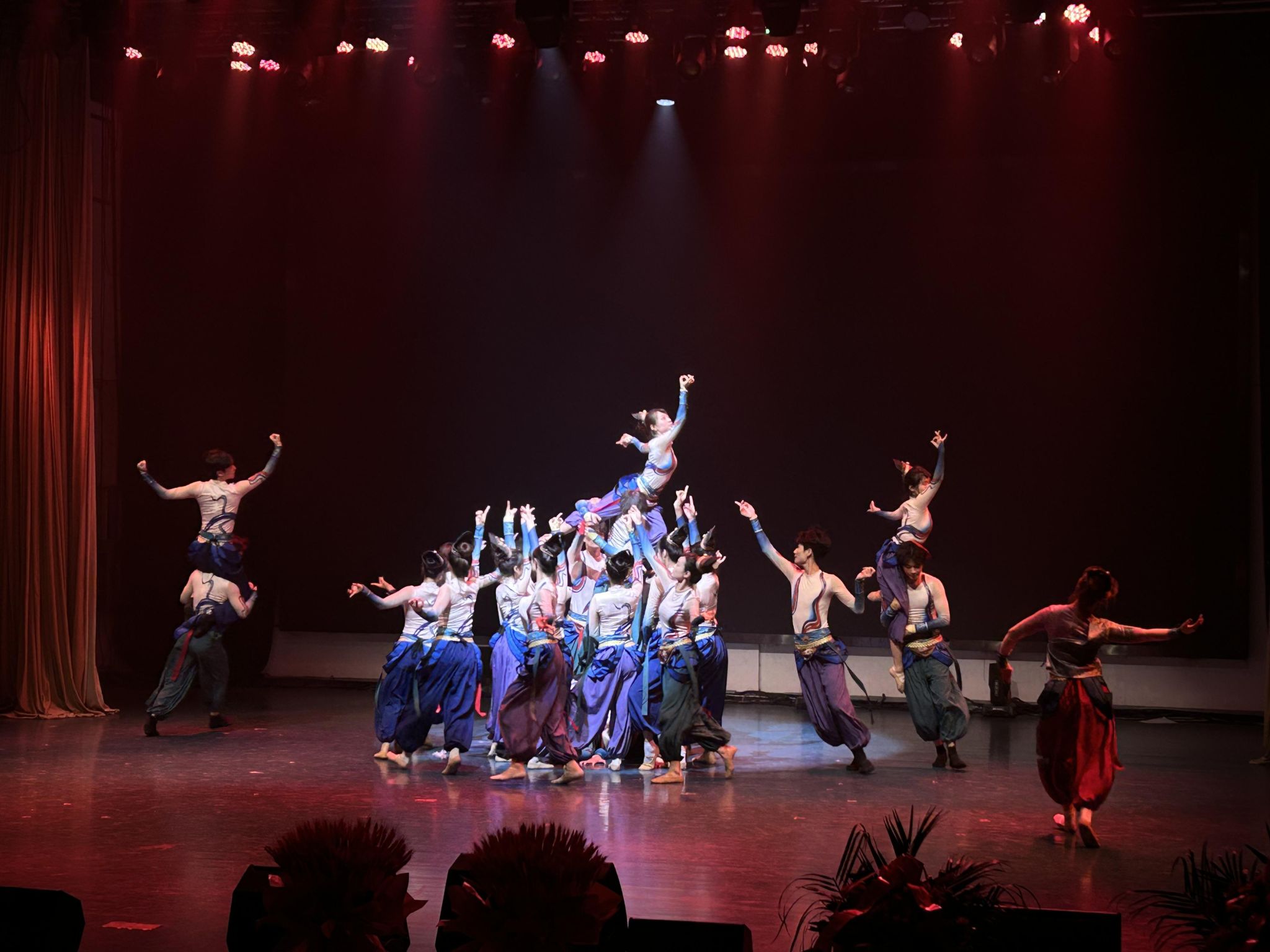 演出结束后,演员与工作人员在舞台合影留念,定格美好瞬间。此次文化艺术节不仅为音乐舞蹈学院的学生提供了展示专业技能的平台,也充分体现了学院在美育教育方面的成果。通过舞蹈艺术浸润心灵,丰富了校园文化生活,促进了艺术文化的传承与创新,获得了现场观众的一致好评。领导嘉宾们的到来,更是对学院艺术教育工作的重视与肯定,激励着学院师生在艺术道路上不断探索前行,为推动校园文化建设和艺术教育事业发展贡献更多力量。