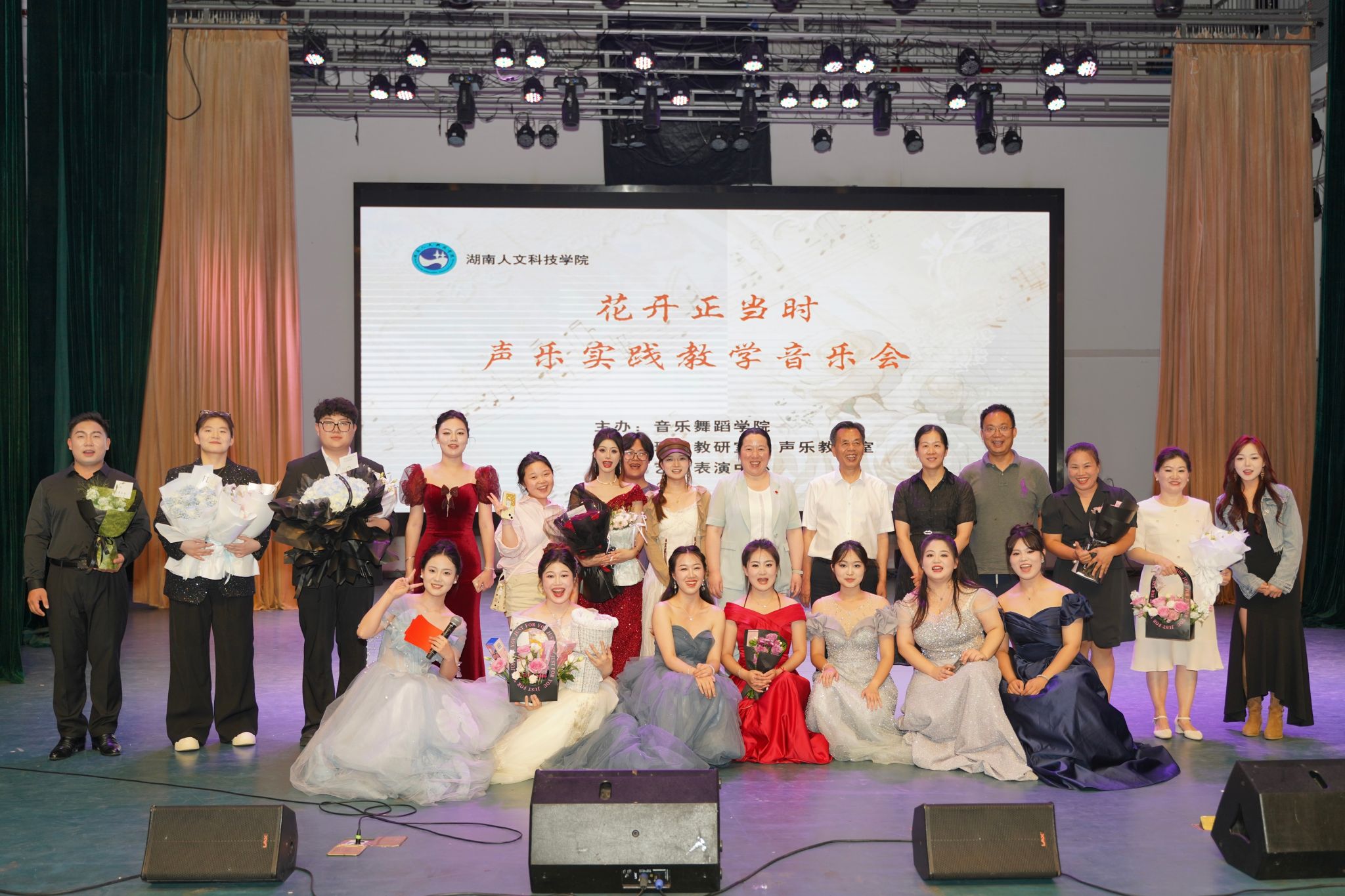 2025年6月10日晚,由音乐舞蹈学院主办,声乐教研室与理论教研室共同承办的“花开正当时”声乐实践教学音乐会,在音乐厅如期举办。学校教学督导团李夫泽团长,胡云生教授、音乐舞蹈学院党总支刘纲华书记、刘利连院长、声乐教研室杨鉴主任以及教师代表和学生共同观看了演出。音乐会由朱燕聪副教授、米黎燕博士担任专业导师,12名大一至大四的优秀学生闪亮登台,深情演唱,较大地彰显了音乐类学生的青春活力和独特风采。