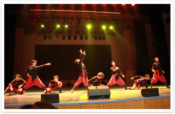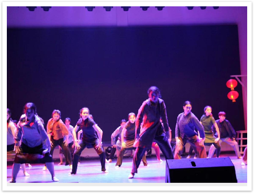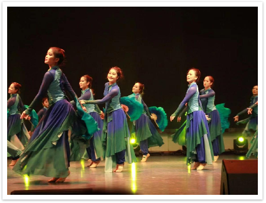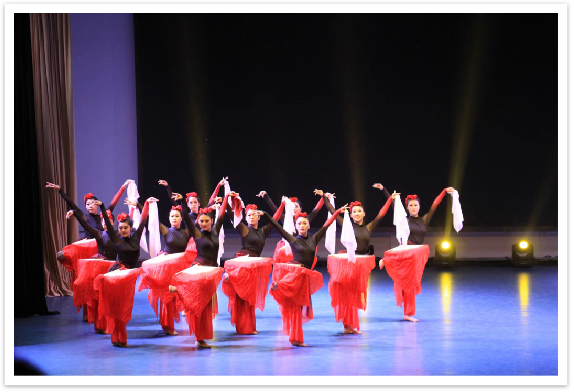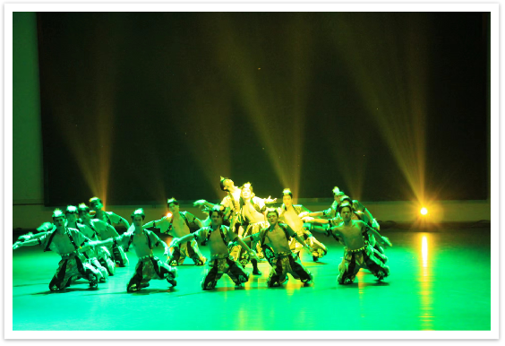 在舞台上,同学们跟随着音乐与鼓点声翩翩起舞,穿戴整齐的装束伴随着优美的舞姿,让台下的观众进入舞蹈所带来的氛围当中,所有节目都反响绝佳,整个音乐厅几乎都被动感的音乐与娴熟的舞姿所吸引,每个节目的表演都极具民族特色,融入了许多少数民族的风格。