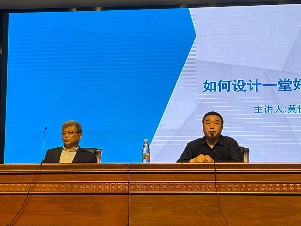 黄老师首先对音乐舞蹈学院的盛情邀请表示了感谢,然后从备教材、备学生、选择合适的教学方法、解读音乐教学目标等12个方面详细阐述了他心中的一堂好的、优秀的中小学音乐课堂。然后根据自己多年来一线的教师教育教学和担任娄底市中小学教师资格证考试评委的丰富经历,给全体学生讲解了教资考试的技巧、范围、注意事项等。
