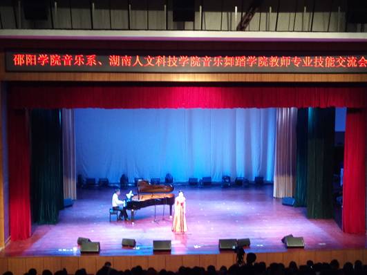 2016年5月27日在音乐舞蹈学院逸夫楼音乐厅举行了邵阳学院,beat365英国官网教师专业技能交流会,我院音乐学所有学生都在现场学习观看。邵阳学院音乐系主任刘准保,系党总支书记陆霞,系副主任金娟飞,以及我院院长谢坚强,副院长李旭开,副院长杨建农参加了本次交流会。