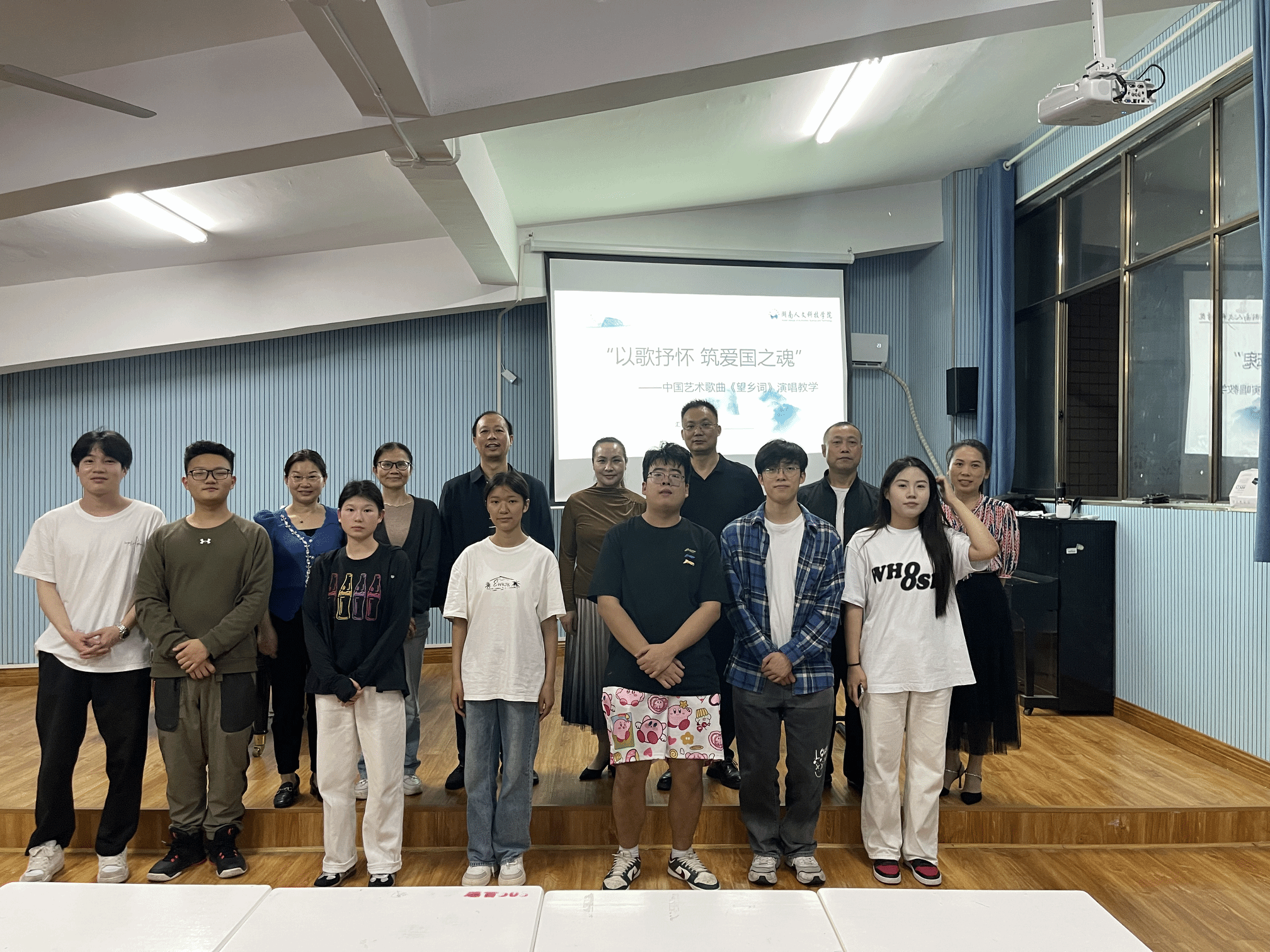 2024年5月7日晚7点半,向章元老师在beat365英国官网逸夫楼声乐实训室举办了“以歌抒怀、筑爱国之魂---中国艺术歌曲《望乡词》演唱教学”专题讲座。讲座由声乐教研室主任杨鉴副教授主持,音乐舞蹈学院院长刘利连教授,声乐教研室的老师和学生们参加了此次主题讲座。