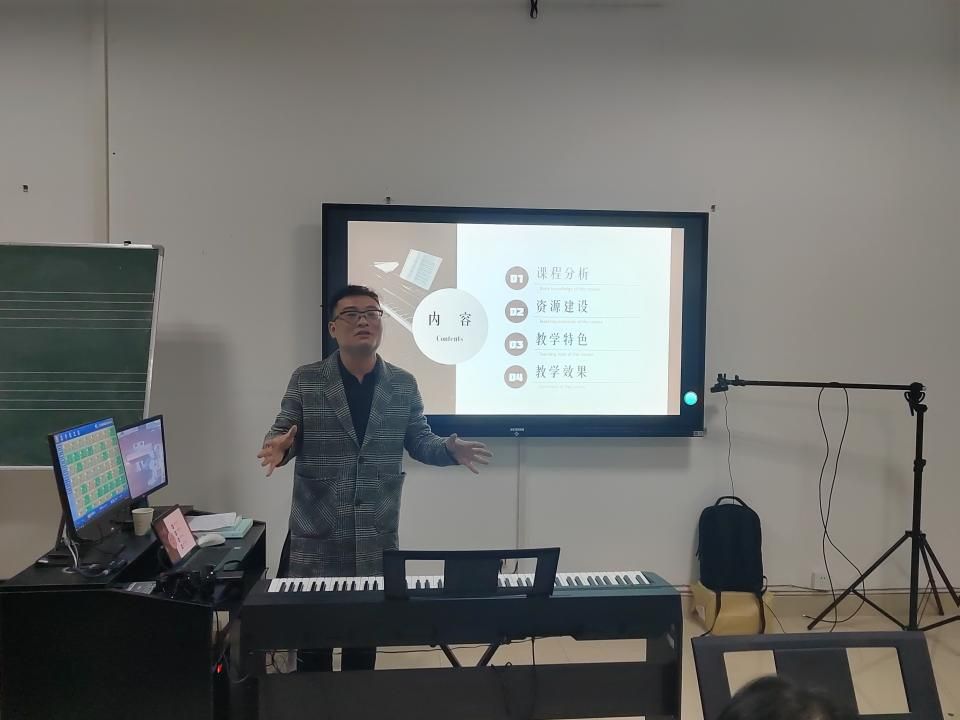11月12日,湖南涉外经济学院音乐学院公共艺术系主任彭翔于我院举办2场题为《高校音乐专业课程信息化教学改革设计之我见》和《应用型钢琴即兴伴奏教学探讨》的学术讲座。讲座由党总支书记刘纲华主持,学院全体教研室主任及教师代表参加讲座。