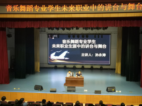 孙校长首先对音乐舞蹈学院的盛情邀请表示了感谢,接着职业分析入手,一体两翼地阐述了“舞台”和“讲台”的含义,然后从“讲台”一词出发,分析了不同教育对象下教师的角色,以及需要良好的奉献精神、扎实的专业技能,同时也指出:不同的教育对象需要关注不同的教育目的、采取不同的教育方法,分清主次;其次,他再从“舞台”一词出发,阐述了对于选择了舞台的人来说,要求会更高:不仅要求声音形象俱佳,也需要更好的专业水平和综合素养,更是要在激烈的竞争中充分把握“合适的机会”才能绽放光彩!