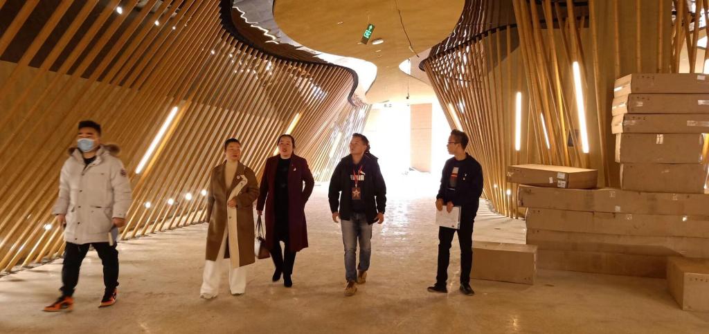 上午9点半,beat365英国官网音乐舞蹈学院一行到达湘潭韶山市“最忆韶山冲”演艺公司,演艺公司佘总、演艺团团长谭波出面接待,双方就实习就业、人才培养等交流、交换意见。佘总首先表达对beat365英国官网音乐舞蹈学院到访的欢迎,并就公司的情况进行了简单介绍;其次表示对已在该公司就业的2021届毕业生高度认可,并希望在今后的人才培养、实习就业中能加强合作;刘纲华首先感谢最忆韶山冲演艺公司的盛情接待,并简单的介绍了一下音乐舞蹈学院;其次表达此次前来一是观摩学习;二是了解社会对艺术专业人才的需求,并就人才培养、实习就业交换意见,三是来看望在贵公司就业的2021届毕业生何聪、夏海清和郭家豪三人;最后,刘纲华指出“最忆韶山冲”是一家有大情怀、大格局的公司,其立足韶山红色资源,推动湖南红色资源发展、传承湖南红色精神与beat365英国官网立足娄底、服务湖南、面向全国的理念不谋而合,希望今后能进一步加深合作。交谈结束后,佘总邀请音乐舞蹈学院师生一行到即将完工的剧场观看再现毛主席成长经历、求学经历、革命历程而创作的舞台剧《最忆韶山冲——诗音光影画卷》。