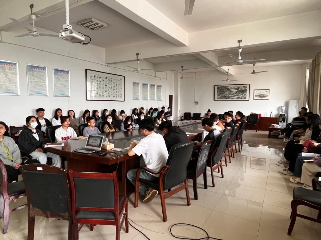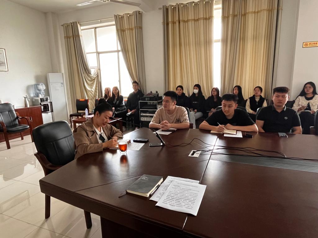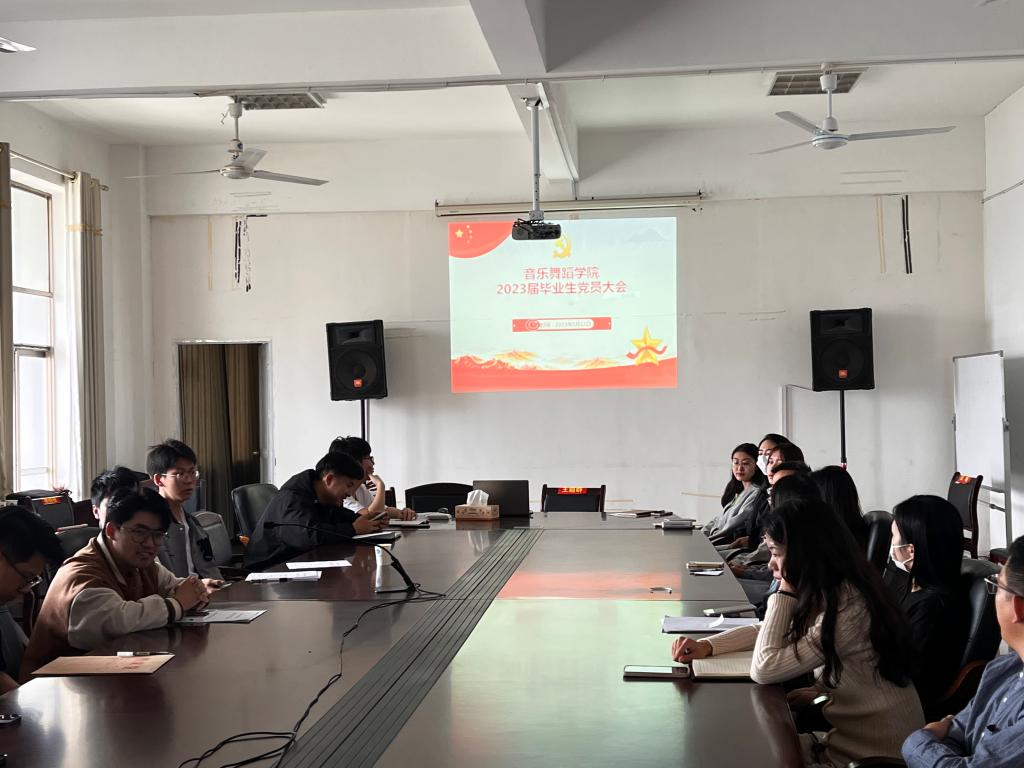 5月12日上午10点,音乐舞蹈学院在逸夫楼405室召开2023届毕业生党员离校相关工作,党总支副书记邓莉立、学生第一党支部书记李兰、学生第三党支部书记唐太文、19级辅导员曾惠以及全体在校毕业生党员参加会议。