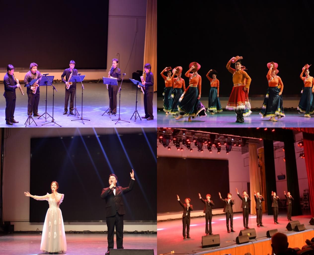 (左上:吹管乐重奏《我的祖国》、右上:群舞《天路》