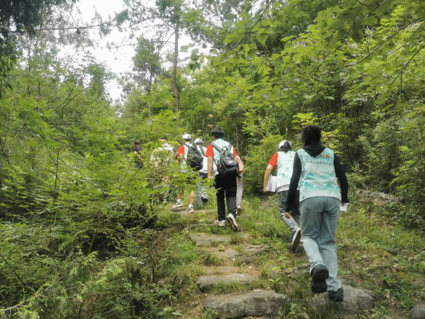 首先在湘安村村支书带领下,文旅志愿团队踏上了重走湘安古道之旅,团队沿着先辈的足迹,探索古道的历史和故事,虽然道路蜿蜒曲折,却是当时大梅山地区进出的主要通道,在毛泽东一行人在不断往返求学的过程中,被年复一年的步履磨得溜溜光光。