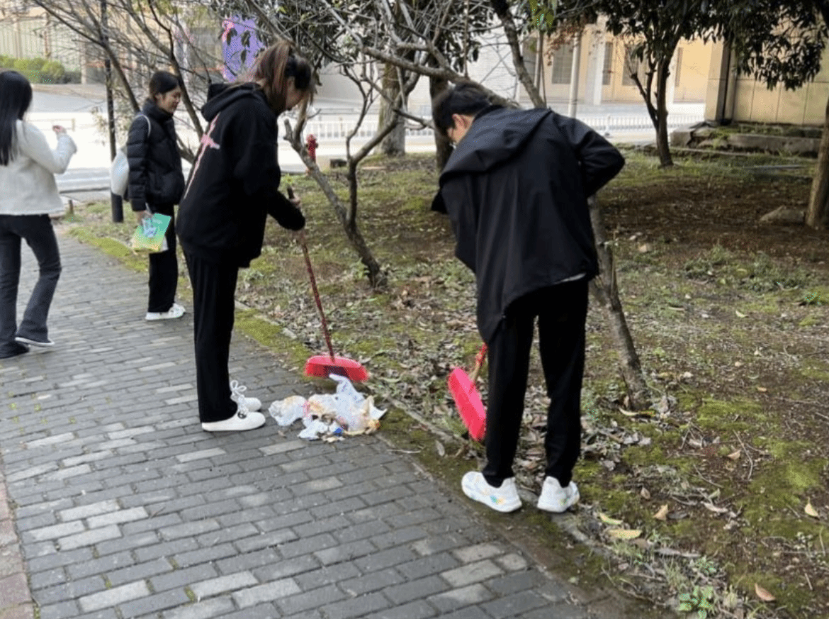 近年来,随着城市化进程的加速,环境污染问题日益严重。空气质量下降,水质恶化,垃圾堆积如山,这些问题已经对市民的健康和生活质量造成了严重影响。为了响应保护环境的号召,2023年11月17日,湖南人文科技音乐舞蹈学院团总支组织了守望花田的活动。音乐舞蹈学院大一的学生们来到逸夫楼进行卫生打扫。