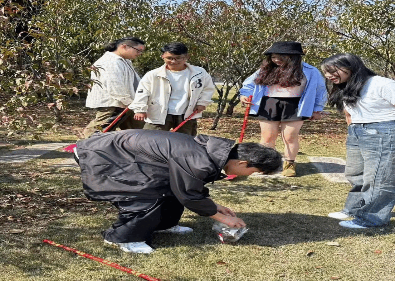 2023年10月30日,音乐舞蹈学院团总支组织了守望花田的活动,大一的学生们来到逸夫楼对面的草坪进行卫生打扫。