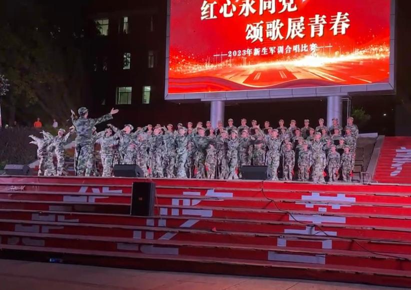 音乐舞蹈学院党总支书记刘纲华,党总支副书记邓莉立、舞蹈教研室主任高洁老师及全体辅导员一起出席并观看演出,声乐教研室主任杨鉴老师,康晓丹教授,谭以珂老师担任此次大赛的评委。我院演唱的歌曲《迎风飘扬的旗》在比赛场上大放光彩,优美的旋律和激昂的歌声无一不让在场师生心潮澎湃。由高洁老师指导的舞蹈《一条大河》更是将现场氛围推向高潮,博得阵阵掌声,展现出拼搏进取、昂扬向上的精神风貌。我院2023级新生在这次比赛中用歌声和旋律唱出新时代青年对党、对祖国、对社会主义的深厚感情,歌声催人奋进,气势振奋人心。经过激烈角逐,我院在本次新生军训红歌比赛中荣获一等奖。大赛最后,在全场师生齐唱校歌《梦想飞翔》的悠扬歌声中,2023年新生军训红歌比赛圆满落幕。