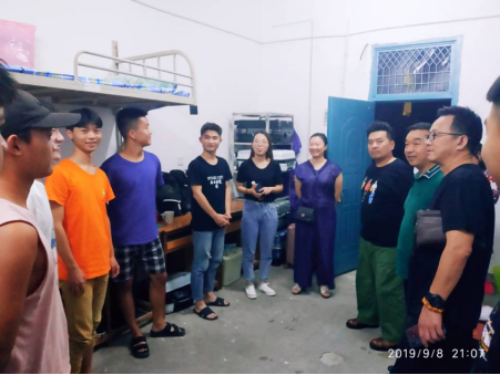 为了迎接2019级新生的到来,让新生更快的适应新环境,适应新的学习和生活,顺利、平稳地实现从高中到大学的过渡。2019年9月9日晚上7点30分,音乐舞蹈学院院长谢坚强、党总支书记周邦春、副院长吴扎拉涛、副院长刘利连、党总支副书记邓莉立、全体辅导员及19级新生班主任下寝室慰问看望新同学。