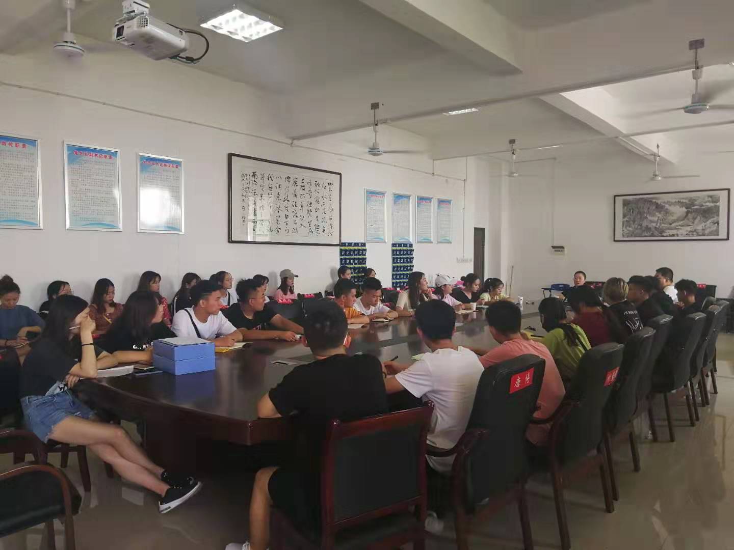 为了能够让新生入校报道时安全、顺利的完成新生报道注册工作,beat365英国官网音乐舞蹈学院于2019年9月5日下午3点在逸夫楼会议室由党总支副书记邓莉立和19级辅导员何洁主持召开迎新工作会议,实习辅导员李彦浩和覃健雅及迎新工作人员等42人参加会议。