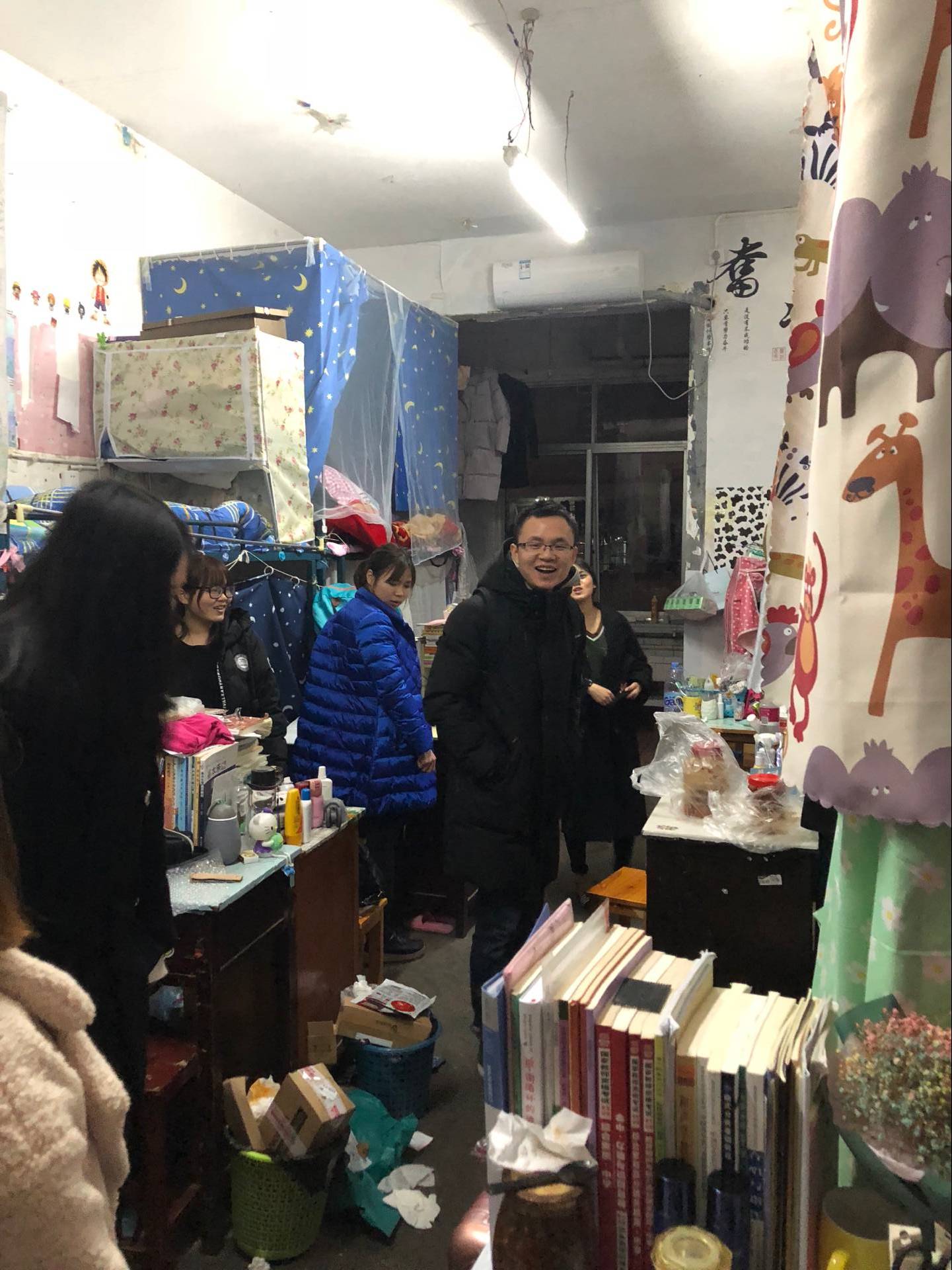新学期开始,为了解我院学生在校的住宿条件和生活状况,给同学们创造一个良好的校园生活环境,三月六号晚上九点,我院党总支副书记周邦春带领全体班主任和辅导员老师到各年级男女生宿舍看望同学。